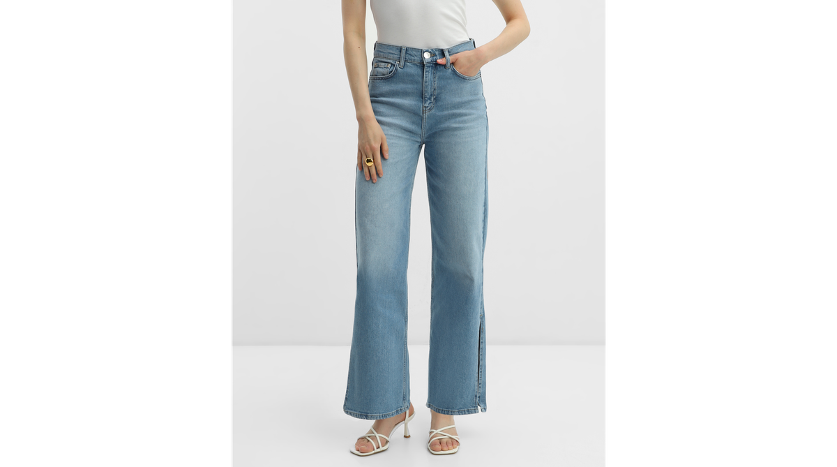 - Harmonia Sensuum - Джинсы прямого кроя с высокой посадкой, пятью карманами и разрезами по низу штанин